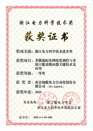 我公司作為重要參與單位,在多能流配電網(wǎng)優(yōu)化調(diào)控與多端口能量路由器關(guān)鍵技術(shù)及應(yīng)用技術(shù)上榮獲浙江省電力學(xué)會(huì)科學(xué)技術(shù)一等獎(jiǎng)。